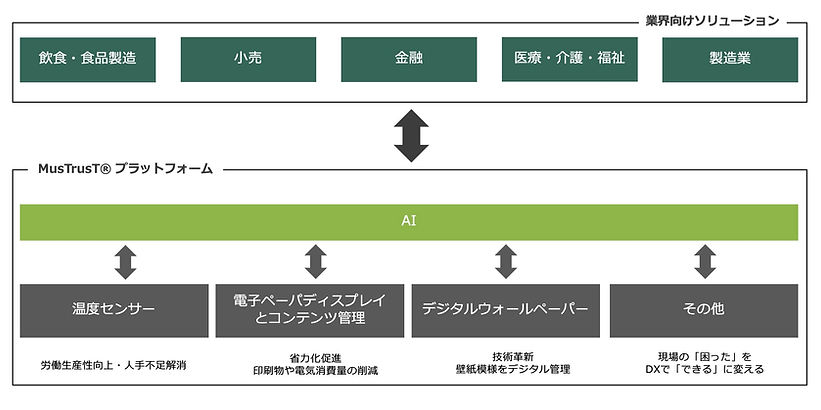 MusTrusT®は、AI技術を中心に据えたIoTプラットフォームとして、さまざまな業界の課題解決を支えます。このプラットフォームは、現場でそのまま使えるスマートインフラであると同時に、弊社が展開する業界向けソリューションの要素技術基盤として活用されています。